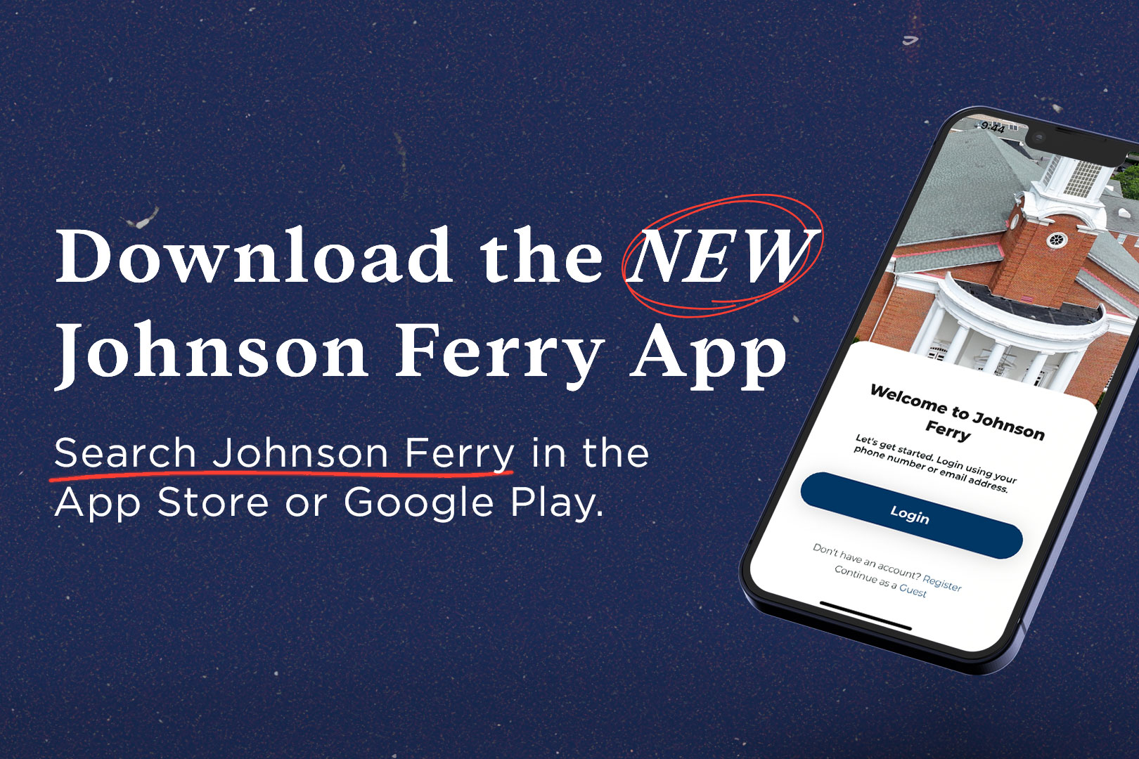 Johnson Ferry has officially launched a new app! Head over to the Apple or Google Play Store now to download the app, where everything is catered to an easy and personalized experience. See what’s coming up, message people in your group(s), give to a ministry, listen to past sermons, and more!