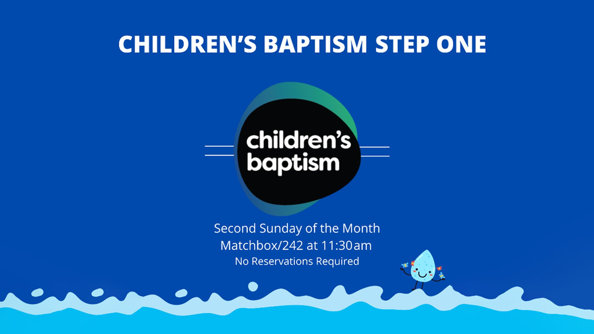 *If you cannot attend this Sunday, we hold Step One Baptism classes every second Sunday of the month in the Matchbox (Room 242) at 11:30am.